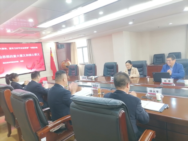 签约仪式结束后,嵇雷结合党的二十大的胜利召开、学习宣传贯彻党的二十大精神,做了“习近平法治思想的重大意义和核心要义”的专题讲座,加深了对习近平法治思想的核心要义的理解,加强了对党的二十大精神的学习领会和把握。讲座在热烈的讨论中落下帷幕。