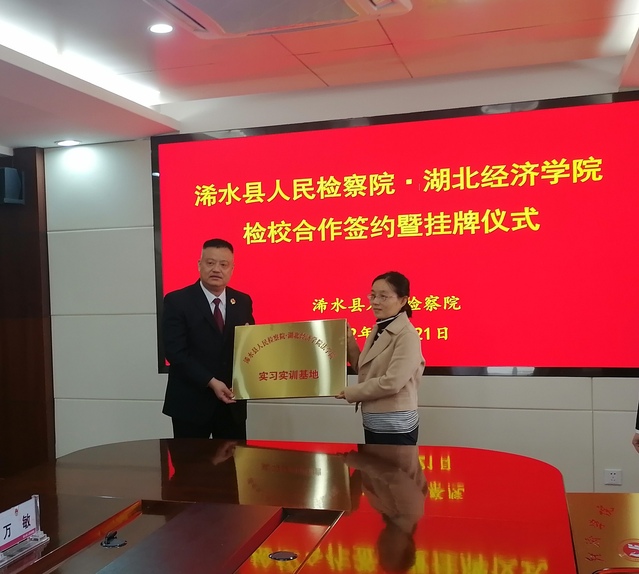 本网讯 (通讯员 郝凤娇)为积极落实我校“三有三实”的人才培养目标,深化法学理论与法学实践相结合,实现高校学术理论与检察业务优势互补,建设高素质的人才队伍,10月21日,我院与浠水县人民检察院举行检校合作签约暨研究生工作站揭牌仪式。